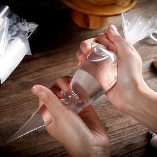 廠家直銷一次性透明塑料裱花袋采用食品級材料,可用于甜品店做奶油蛋糕、曲奇和餅干等,可以配合金屬花嘴使用。可定制Logo,尺寸和厚度。