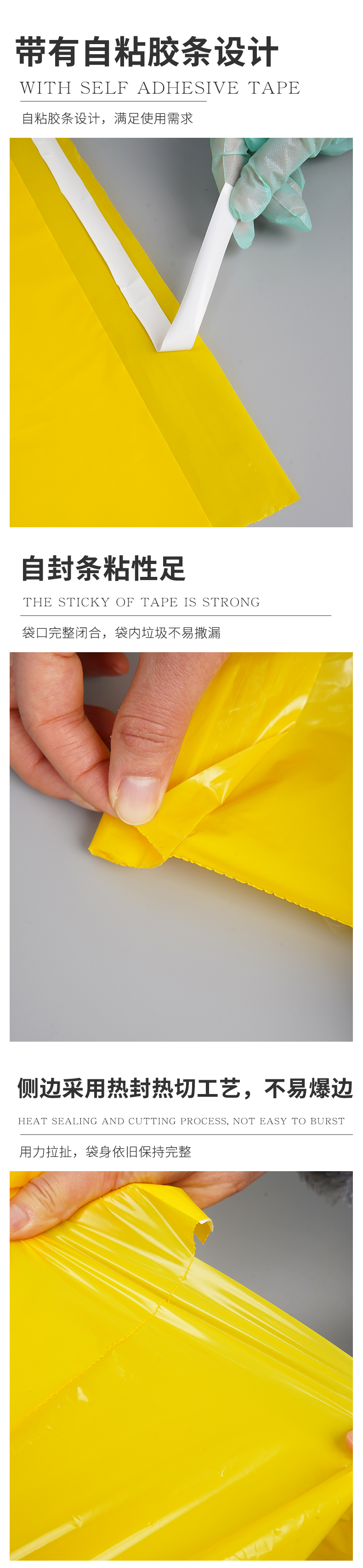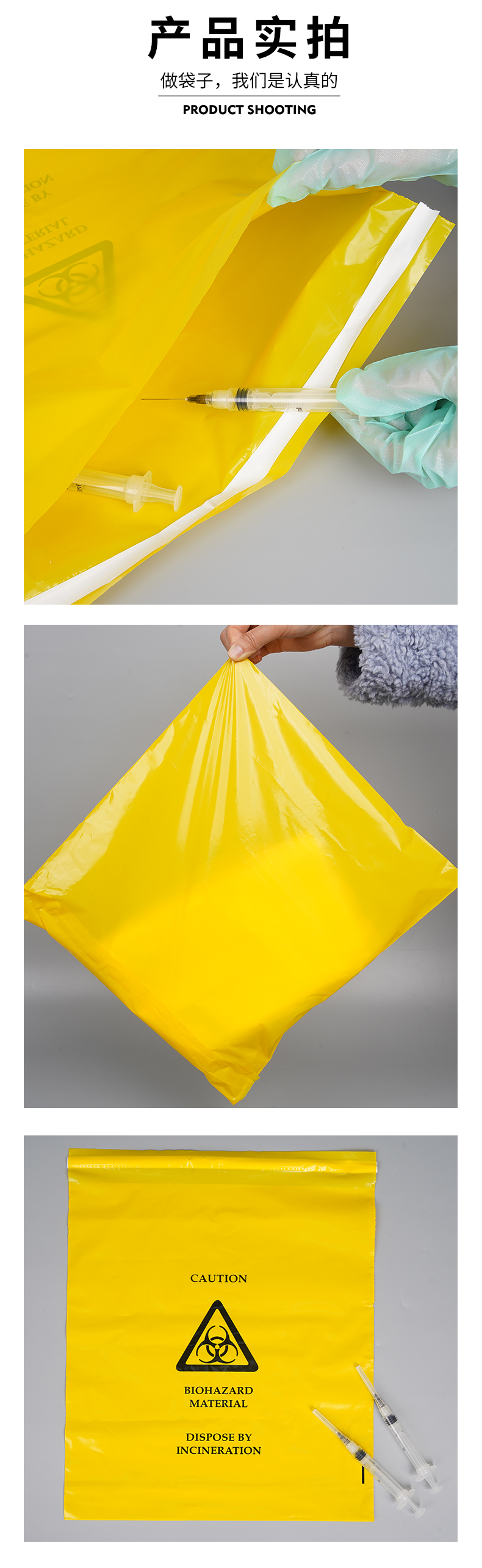 | 款式 | 該款為一次性塑料黃色自密封貼膠醫療垃圾袋 |
